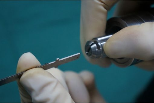 Lưỡi cưa làm từ thép y tế, dẻo nhưng dễ mòn. Khuyến nghị: 1 lưỡi/1 ca mổ.