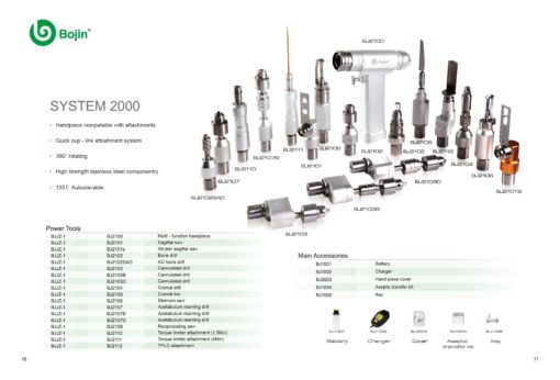 Máy khoan cưa xương y tế đa năng System 2000 là thiết bị chuyên dụng trong phẫu thuật chỉnh hình, hỗ trợ các thủ thuật như khoan xương, cưa dọc/ngang, và bào ổ khớp. Thiết bị thường được sử dụng trong phẫu thuật khớp, sọ não, xương ức, và các ca đặt đinh Kirschner 5.